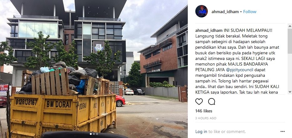 “Sekali lagi saya memohon pihak Majlis Bandaraya Petaling Jaya (MBPJ) @pjcitycouncil dapat mengambil tindakan kepada pengusaha sampah ini,” luahnya menerusi laman sosial Instagram miliknya.
