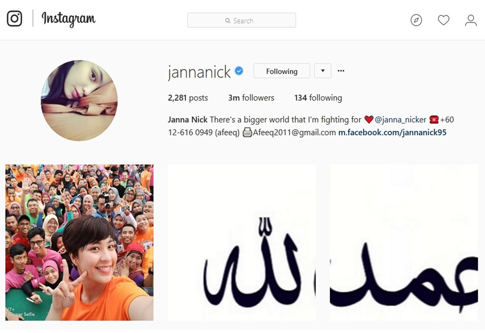 Bagaimanapun, menerusi tinjauan yang dilakukan oleh KopiPlanet.com pada pagi ini mendapati akaun Instagram Janna Nick sudah pulih dan semua gambar-gambar yang dimuat naik kembali ada.