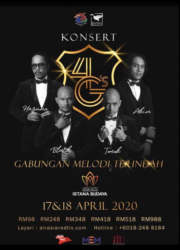 Konsert 4G’s bakal diadakan di Panggung Sari, Istana Budaya pada 17 dan 18 April depan.