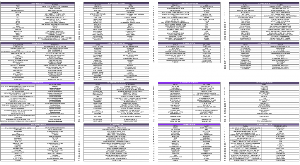 Susulan kelonggaran prosedur operasi standard (SOP) membabitkan sektor industri kreatif untuk negeri dalam Fasa 3, pihak Astro dengan berbesar hati membawakan kembali penganjuran anugerah pilihan penonton, Anugerah MeleTOP Era (AME) 2021 untuk tahun kelapan bagi meraikan karya dan personaliti paling menyerlah sepanjang tahun 2020 yang merangkumi bidang muzik, radio, televisyen, filem dan digital.