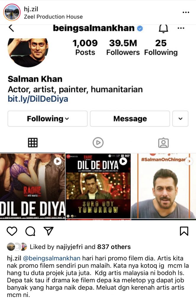 “@beingsalmankhan hari-hari promo filem dia. Artis kita nak promo filem sendiri pun malaih.