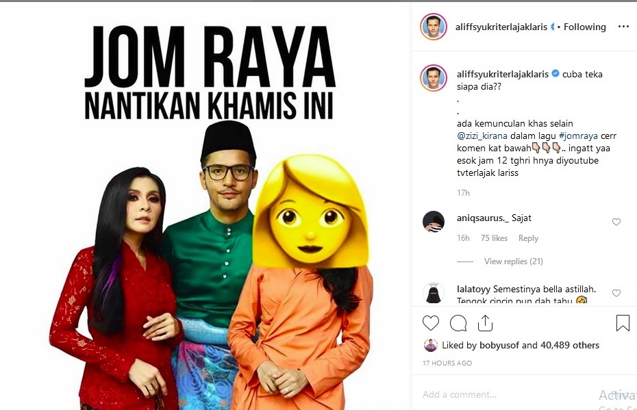 Teka-teki mengenai seorang individu lagi individu yang akan membuat kemunculan dalam video lagu Jom Raya nyanyian Datuk Seri Aliff Syukri akhirnya terjawab.