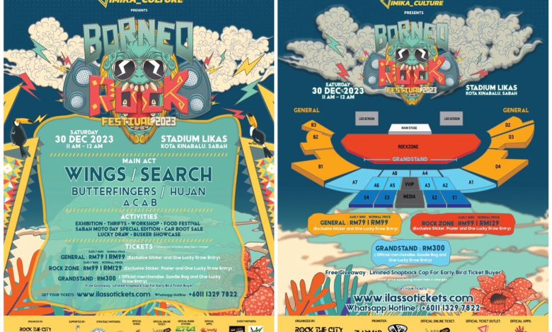 Lebih menarik lagi, kumpulan Search, Wings, A.C.A.B, Hujan, Butterfingers menjadi tarikan utama Borneo Rock Festival 2023.