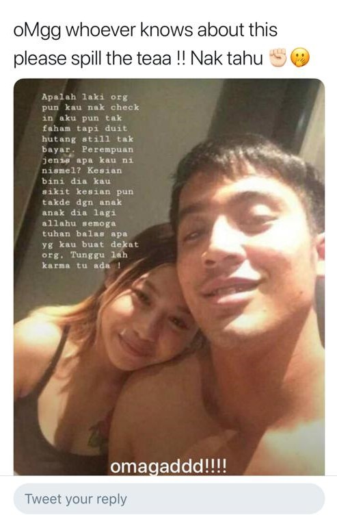 “Kesian bini dia kau sikit kesian pun takde dengan anak dia lagi allahu semoga tuhan balas apa yang kau buat dekat orang. Tunggu lah karma tu ada,” menurut kenyataan yang dibuat di gambar tersebut. – KopiPlanet.com