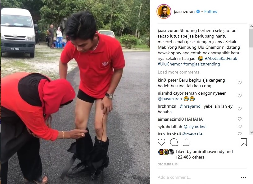 Jaa menerima kritikan negatif daripada netizen gara-gara dirinya yang hanya tampil dengan membuka seluar dan hanya memakai seluar pendek ketat ketika seorang wanita mahu menyapu ubat dilututnya.