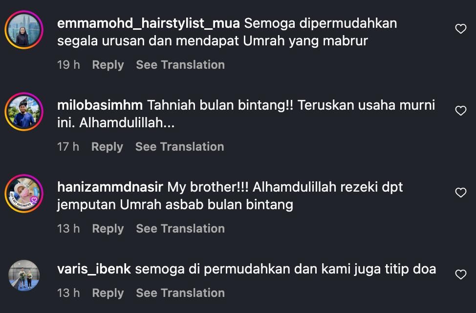 Pengasas Bulan Bintang, Azzim Zahid Azmi yang mesra dipanggil Meri meluahkan rasa gembira kerana dapat menghantar pemenang bertuah menunaikan ibadah di Tanah Suci.