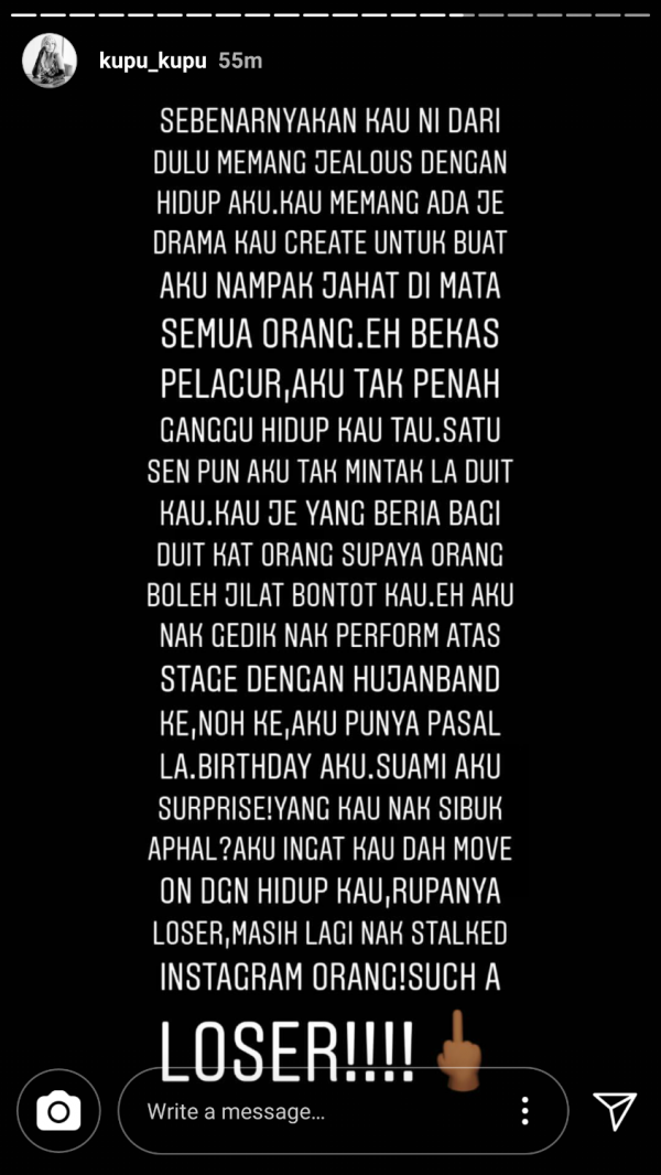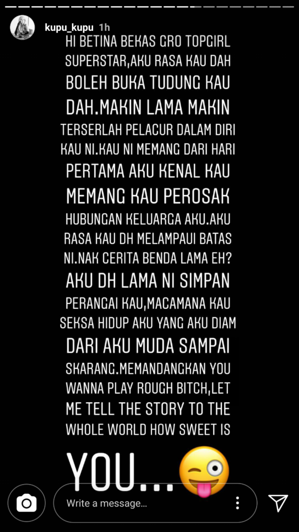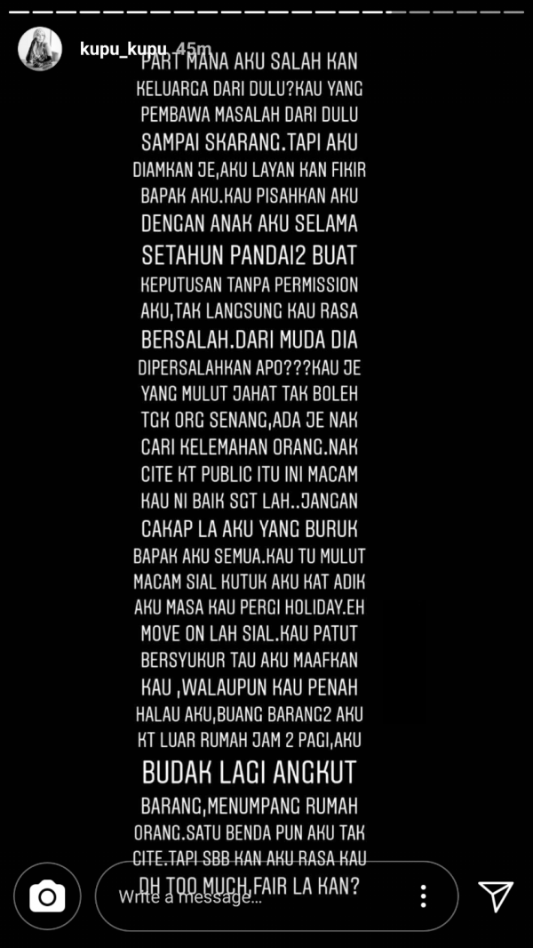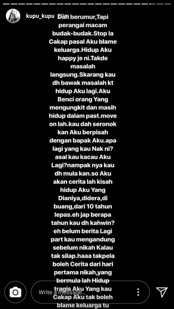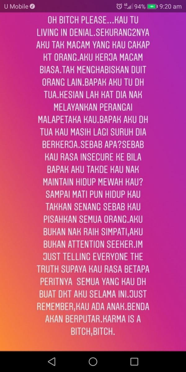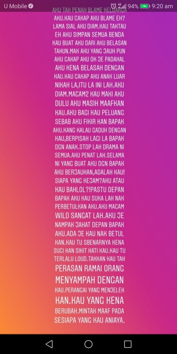 “Aku dah lama ni simpan perangai kau, macam mana kau seksa hidup aku yang aku diam dari aku muda sampai sekarang.