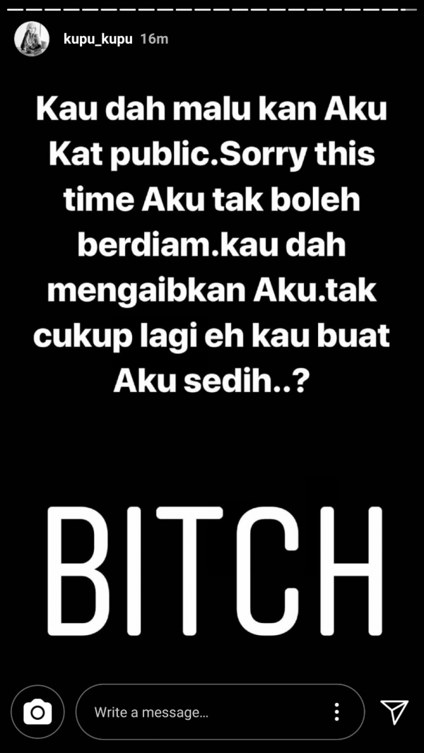 “Kau memang ada sahaja drama kau create untuk buat aku nampak jahat di mata semua orang.
