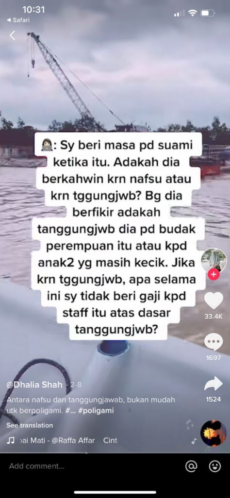 Tambahnya lagi, dia tidak pernah sesekali menentang poligami namun bukanlah dengan cara pengkhianatan dan kepura-puraan seperti yang dihadapinya.