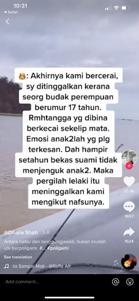 “Akhirnya kami bercerai. Saya ditinggalkan kerana budak perempuan berumur 17 tahun. Rumah tangga yang dibina berkecai sekelip mata.
