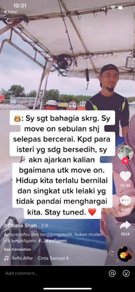 “Saya sangat bahagia sekarang. Saya move on sebulan sahaja selepas bercerai. Kepada para isteri yang sedang bersedih, saya ajarkan kalian bagaimana untuk move on.