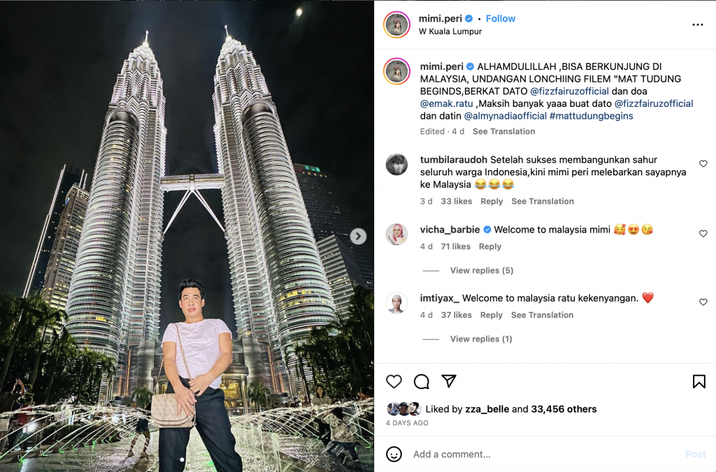 Berpeluang dapat berlakon dalam filem Mat Tudung Begins, ternyata ia menjadi kenangan terindah buat influencer terkenal Indonesia, Mimi Peri apabila dapat menjejakkan kaki ke Kuala Lumpur.