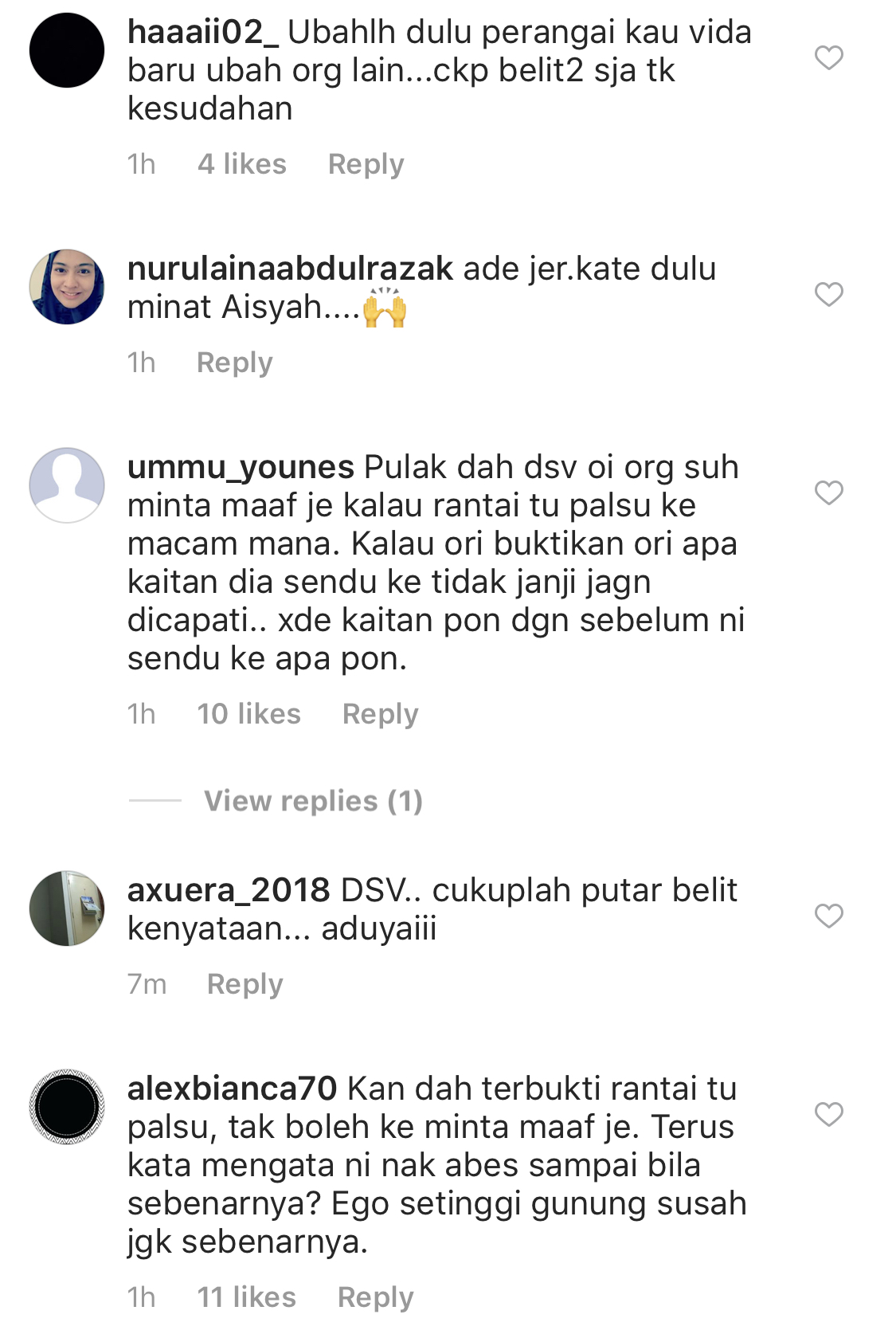 Sebelum ini, kontroversi antara DSV dan Aishah mula timbul setelah pemenang tempat pertama Gegar Vaganza 4 itu mendakwa usahawan berkenaan memberikan rantai palsu untuk hadiah sebagai juara.