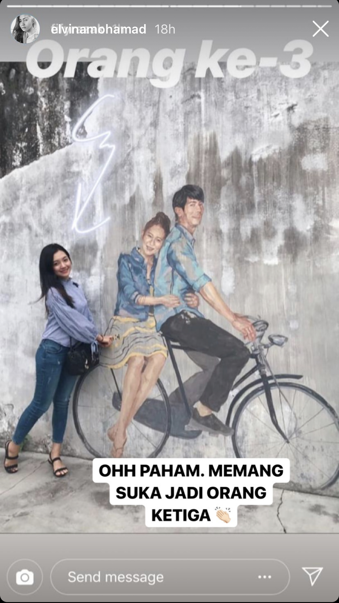“Ohh paham. Memang suka jadi orang ketika,” luah Elvina menerusi Insta Story miliknya itu.