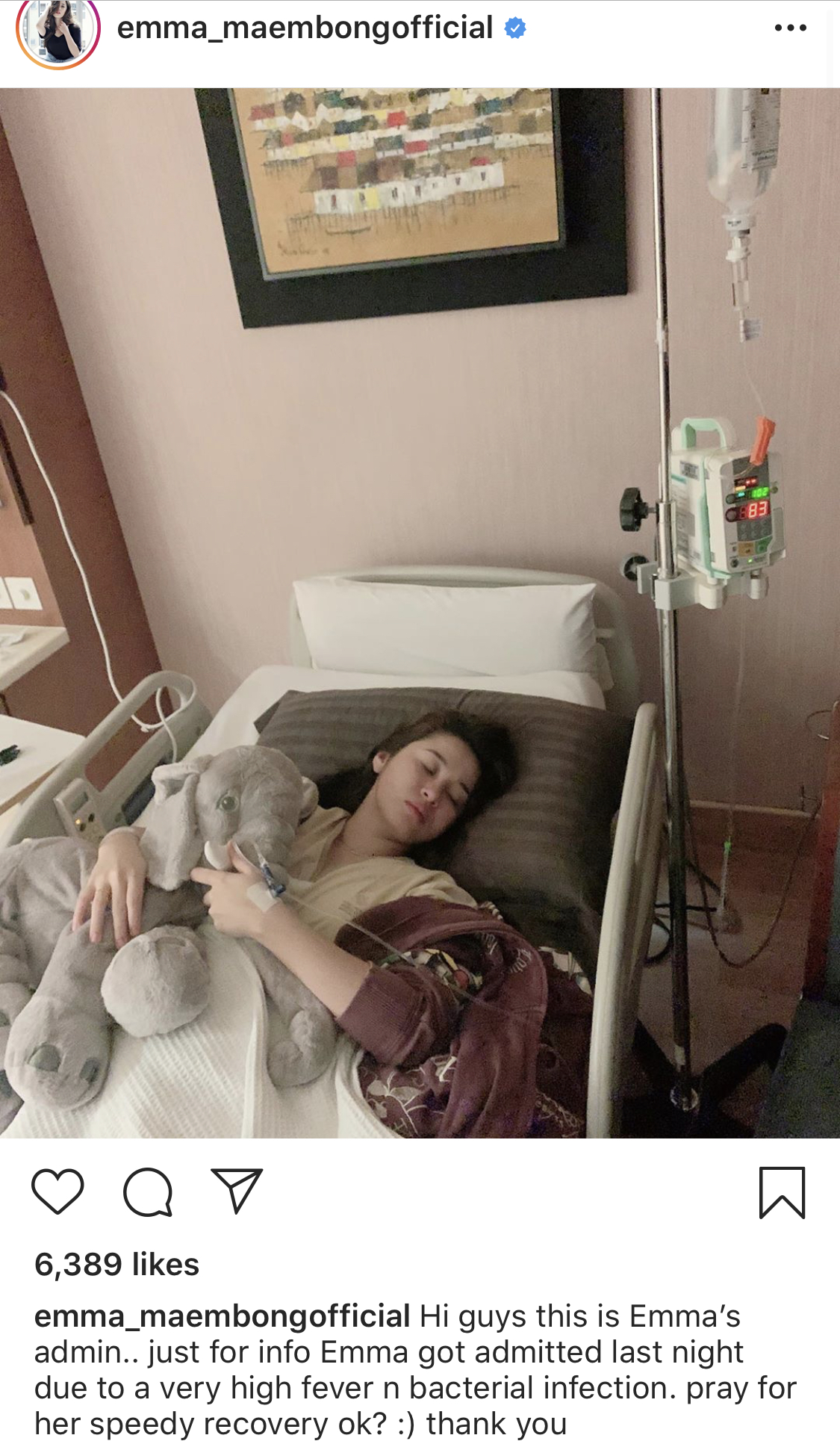 “Hi guys this is Emma’s admin… Just for info Emma got admitted last night due to a very high fever n bacterial infection.