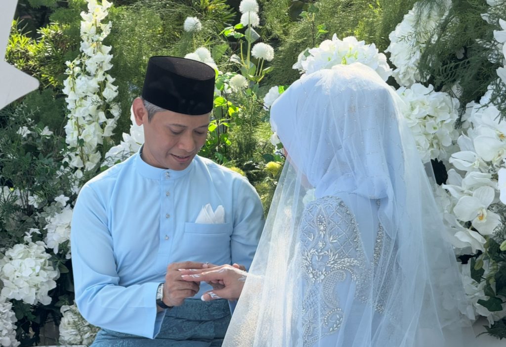 Pasangan ini dinikahkan oleh jurunikah Penolong Pendaftar Perkahwinan, Majlis Agama Islam Selangor, Mohd Sabirin Noordin.