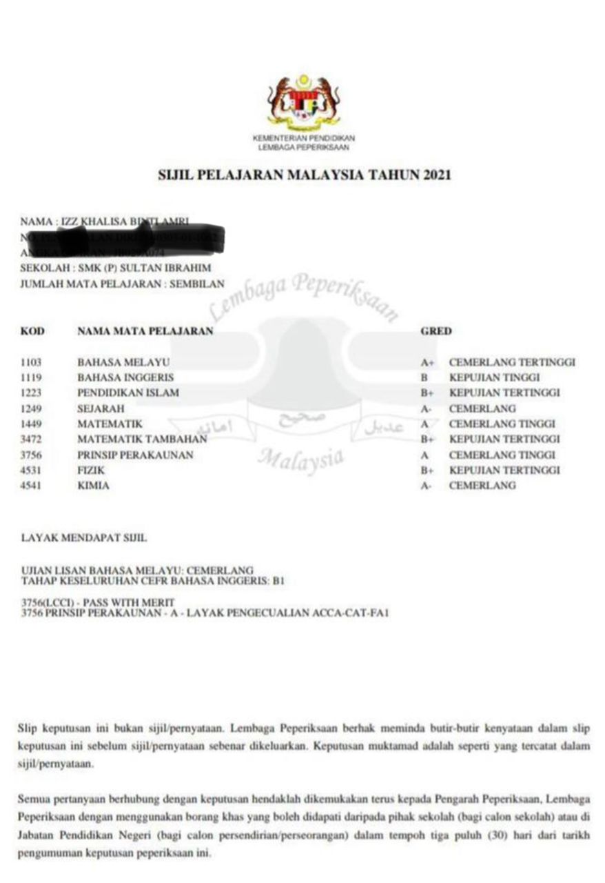 Gagal Tiga Subjek Ketika Peperiksaan Percubaan, Izz Khalisa Catat Keputusan Cemerlang SPM 2021 PTTI