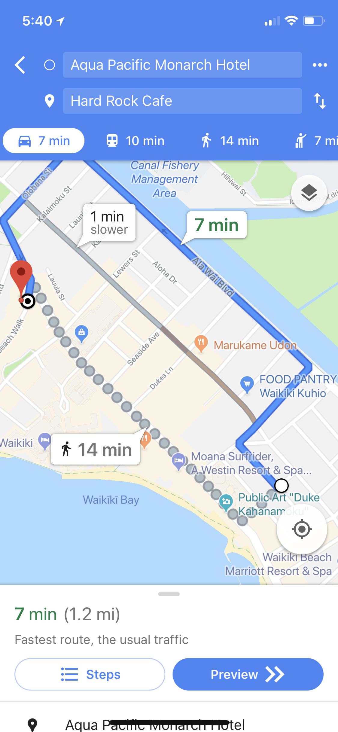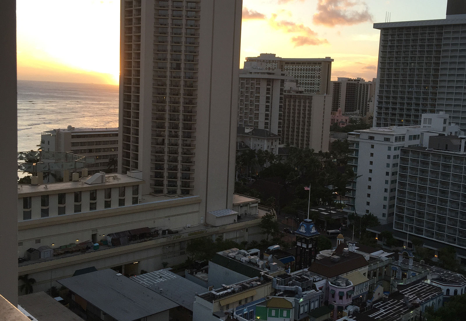 Setelah mengharungi hampir 19 jam penerbangan termasuk transit, akhirnya penulis dan isteri tiba di hotel penginapan kami di Aqua Pacific Monarch, Waikiki, Honolulu. Perlu diingat, waktu masa antara Malaysia dan Hawaii berbeza iaitu 18 jam. Penulis bertolak pada 16 Oktober 2017 (Isnin) pukul 2.00 petang dan tiba di Honolulu pada 16 Oktober 2017 (Isnin) pukul 4.00 petang.