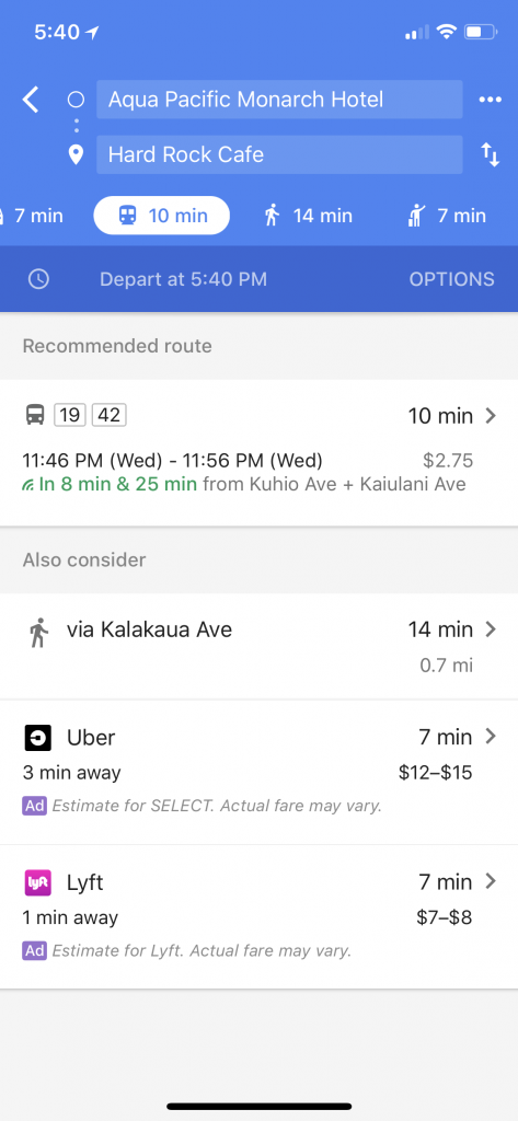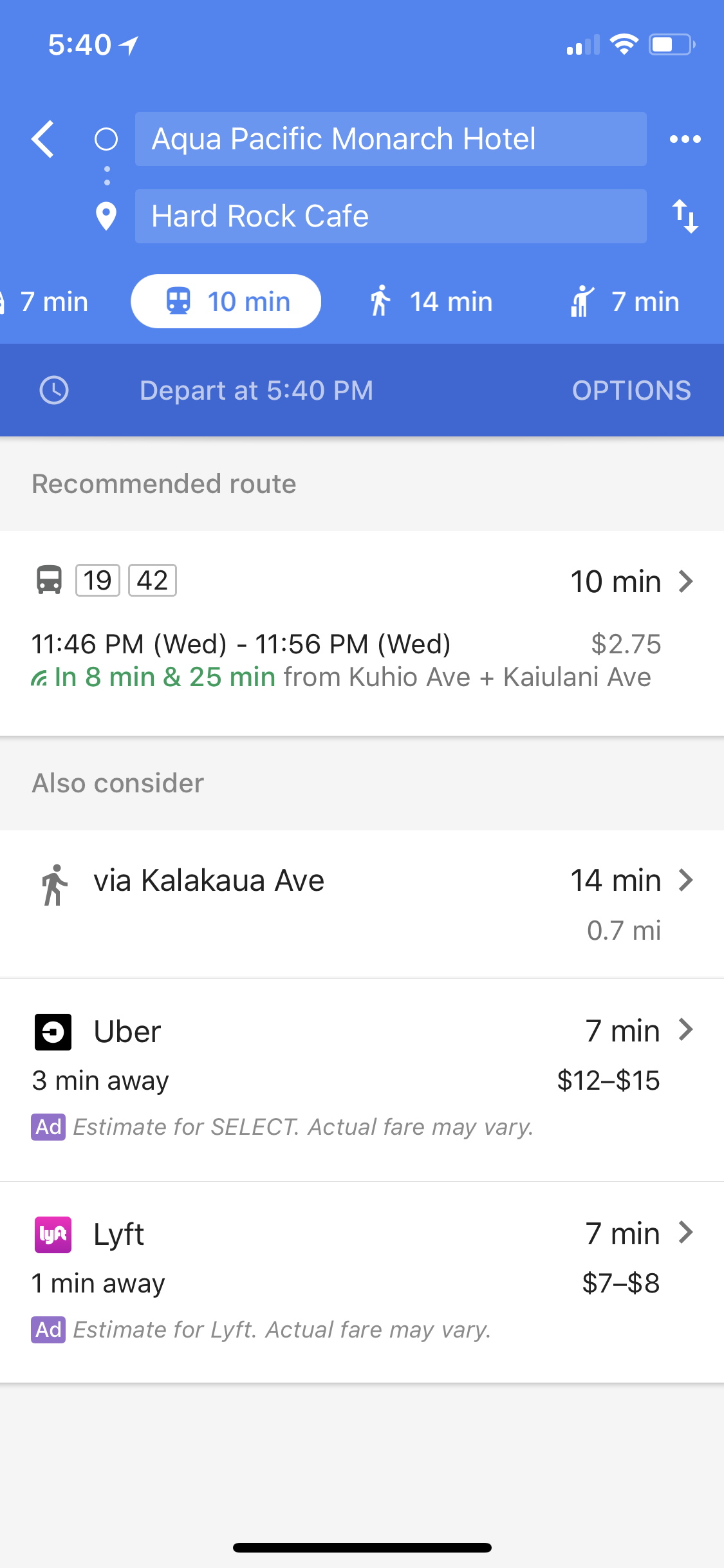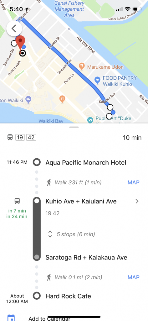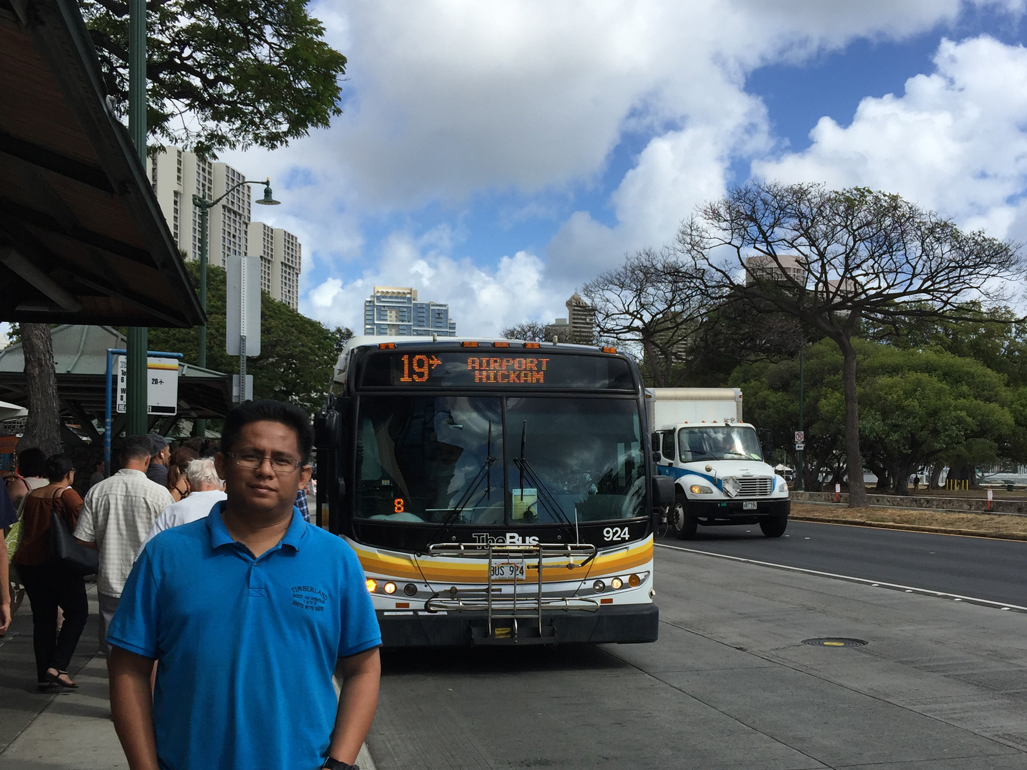 Untuk pergi ke sesuatu tempat, penulis dan isteri memang banyak menggunakan bas sahaja. Tiket pun murah iaitu USD2.50 untuk perjalanan sehala. Kalau hendak ke tempat-tempat seperti Pearl Harbour, King Kamehameha Statue, Diamond Head, Ala Moana Centre dan Waikele Premium Outlets pun boleh pergi dengan menaiki bas.