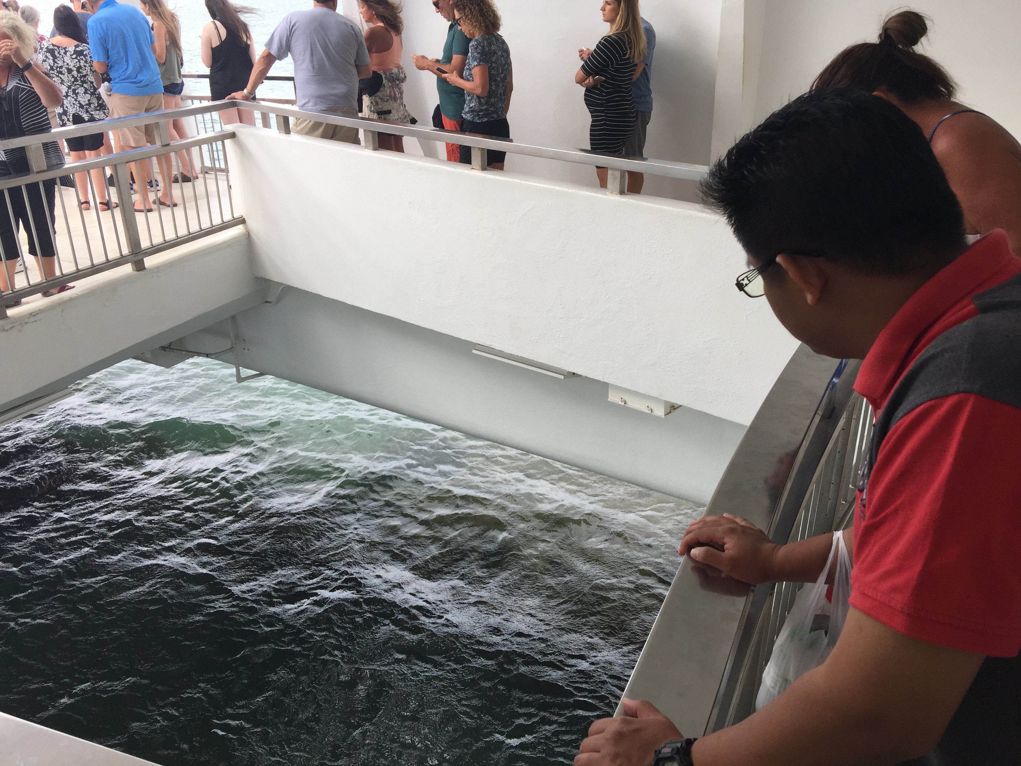Kemudian, barulah pengunjung akan dibawa ke kapal USS Arizona lebih kurang lima minit sahaja menaiki bot (lawatan ke USS Arizona akan dibatalkan sekiranya hujan lebat atau cuaca buruk). Penulis bernasib baik kerana cuaca ketika itu agak cerah.