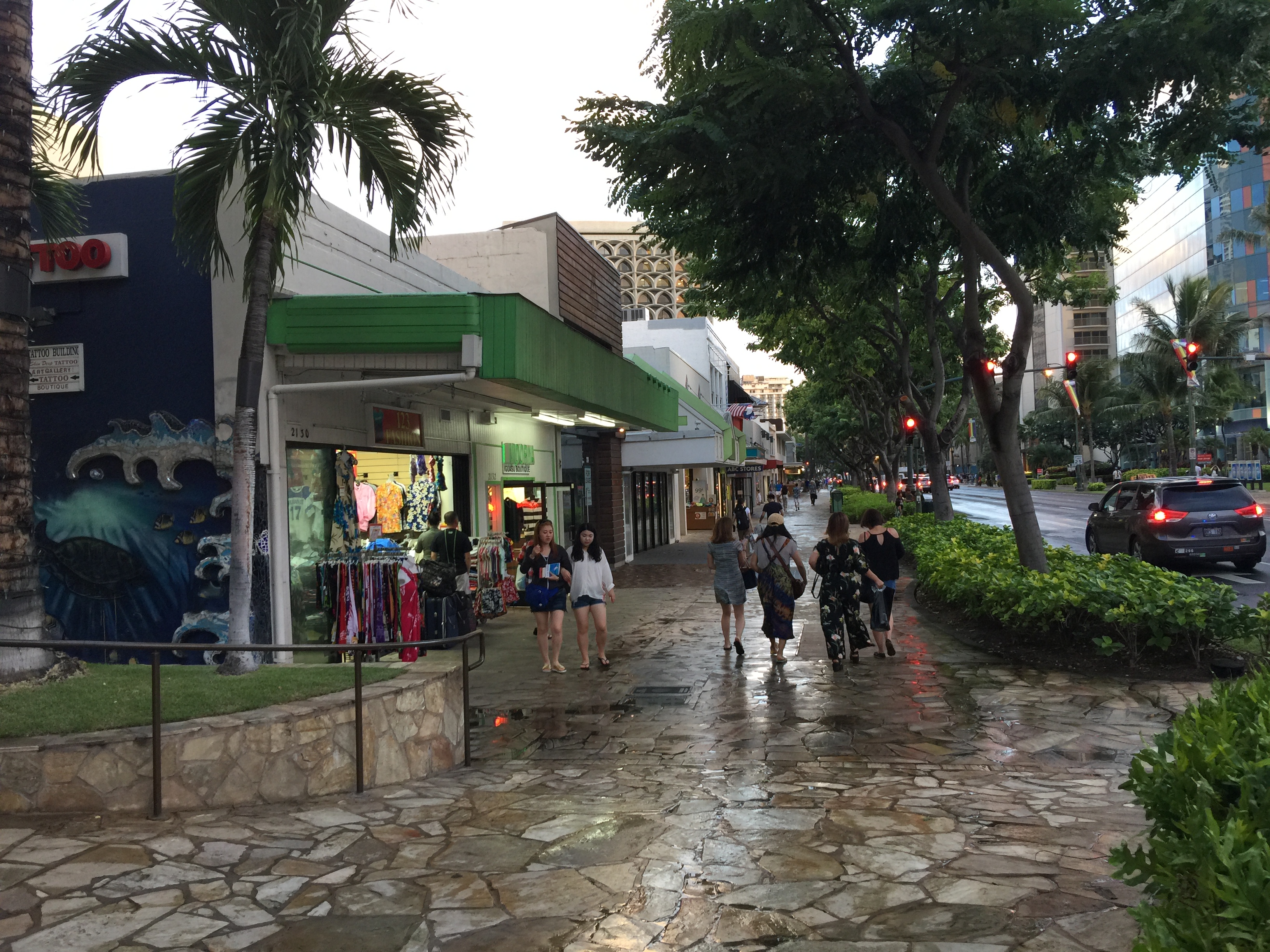 Selain pantai, di area Waikiki Beach juga terdapat banyak butik-butik mewah di sepanjang jalan Kalakau Ave. Umpamanya area seperti di kawasan Bukit Bintang yang penuh dengan butik-butik di kiri dan kanan serta bangunan dan hotel-hotel mewah. Setakat nak jumpa butik Coach, Kate Spade, Calvin Klein, memang bersepah. Kalau nak ke Hard Rock Café Honolulu dari hotel penulis pun dekat, hanya jalan kaki dalam 15 minit jer.