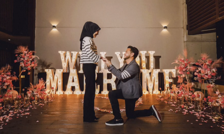 Dalam gambar tersebut, kelihatan Nik melutut di hadapan penyanyi berkenaan dengan latar belakang perkataan yang tertulis ‘Will You Marry Me’.