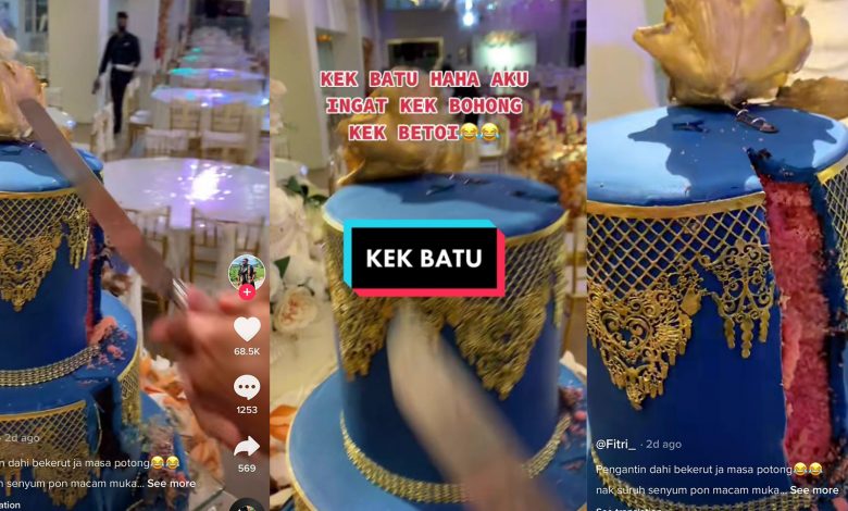 Namun lain pula hal yang berlaku dalam sebuah majlis perkahwinan apabila kek yang sepatutnya ‘memaniskan’ acara terlalu keras sehingga sukar untuk dipotong.