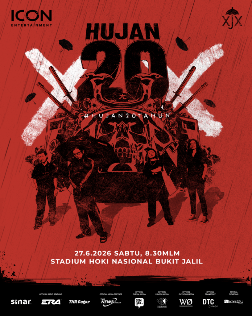 Diberi nama HUJAN XX : #HUJAN20TAHUN, konsert berskala besar ini bakal berlangsung di Stadium Hoki Nasional Bukit Jalil, Kuala Lumpur pada 27 Jun 2026.