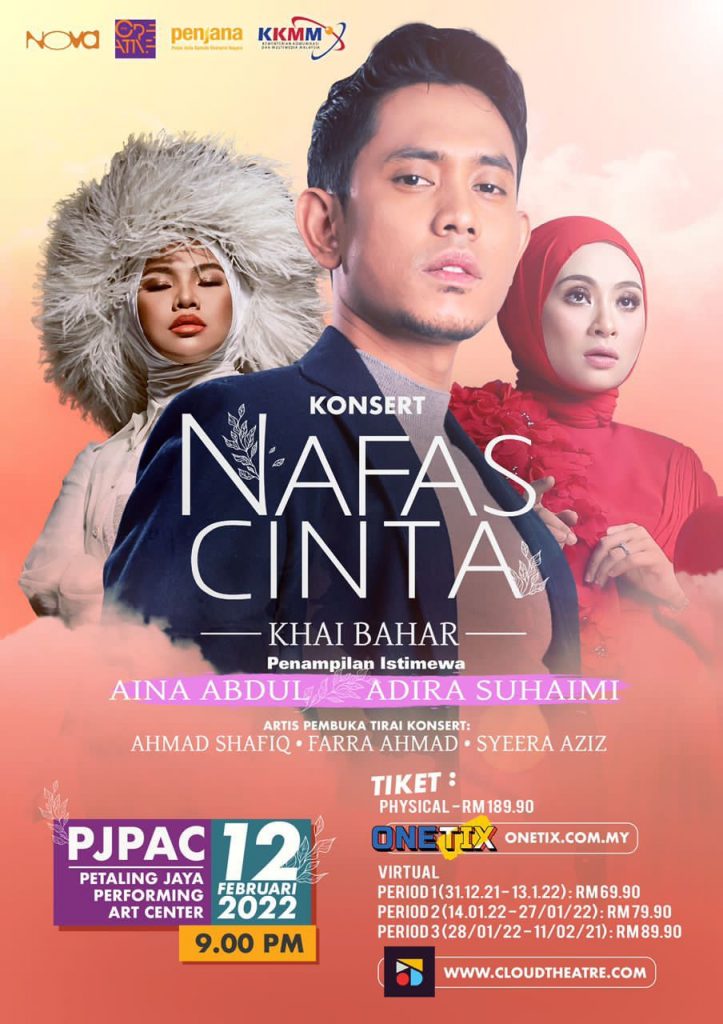 Tiket tontonan konsert secara fizikal yang dijual dengan harga RM189.90 boleh mula dibeli pada 31hb. Disember ‘21 di ONETIX dengan melayari https://onetix.com.my/ manakala tiket tontonan konsert secara virtual yang dijual dengan harga RM69.90 (31/12/21 – 13/01/22), RM79.90 (14/01/22 – 27/01/22) dan RM89.90 (28/01/22 – 11/02/22) boleh di beli pada hari yang sama dengan melayari https://www.cloudtheatre.com/my/ . – KopiPlanet.com