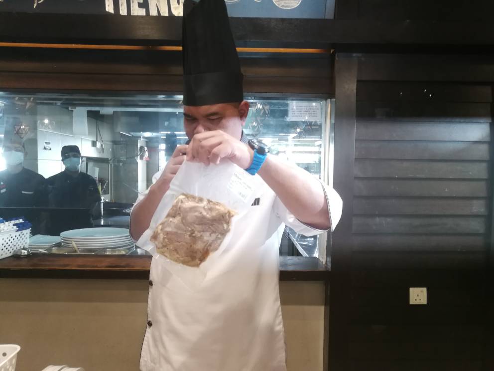 Turut hadir pada majlis itu ialah Ketua Chef, Muhammad Fazli Abdullah yang membawa para media ke gudang pemotongan daging selain menunjukkan cara-cara penyediaan makanan di situ.
