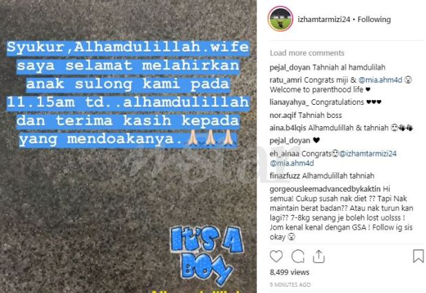 Rata-rata peminat mengucapkan tahniah di atas kelahiran anak sulung pasangan itu dan berharap putera Mia akan membesar dengan sihat.