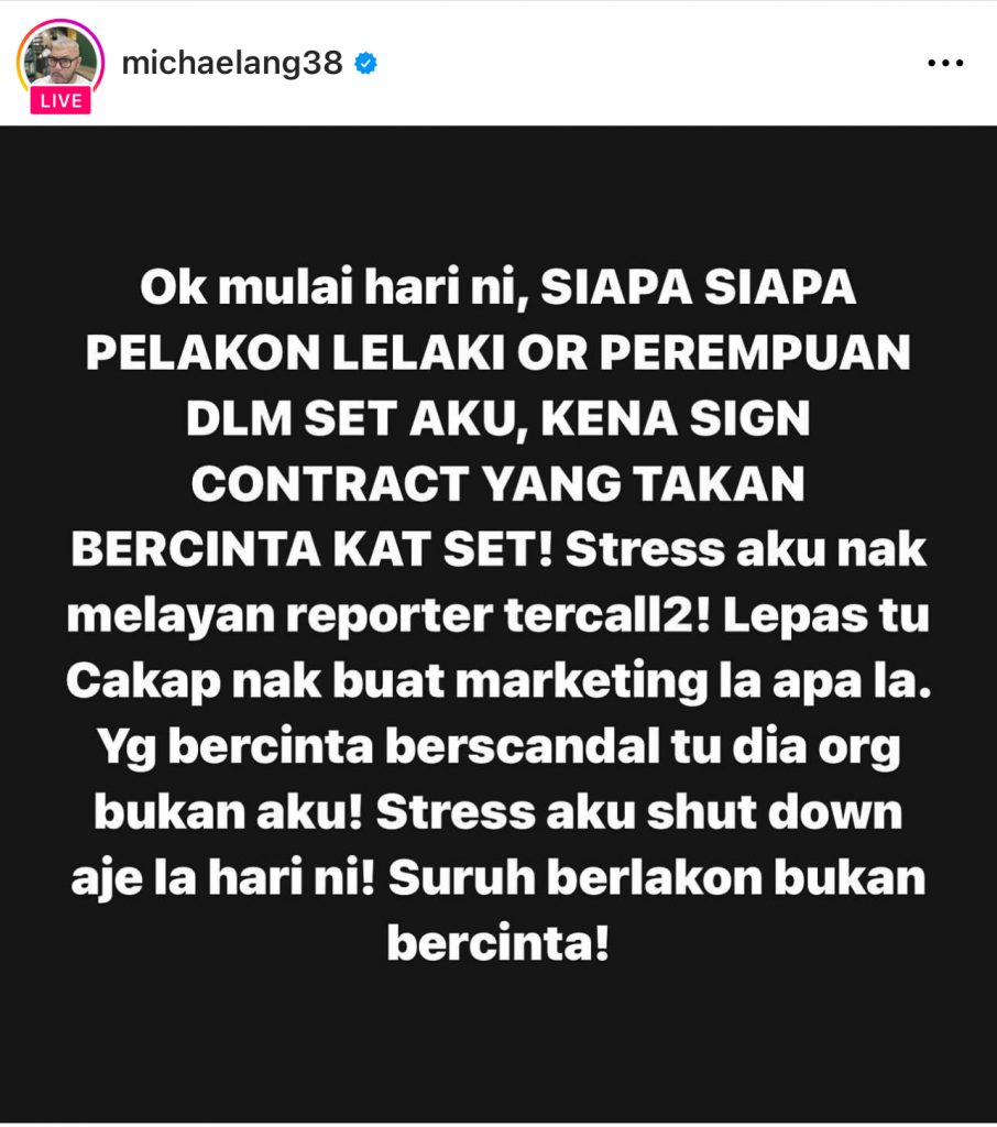 Michael Ang Letak Syarat, Pelakon Lelaki & Perempuan Tak Dibenarkan Bercinta Di Lokasi Penggambarannya