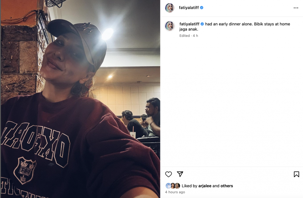 “Had an early dinner alone. Bibik stays at home jaga anak,” tulisnya ringkas.