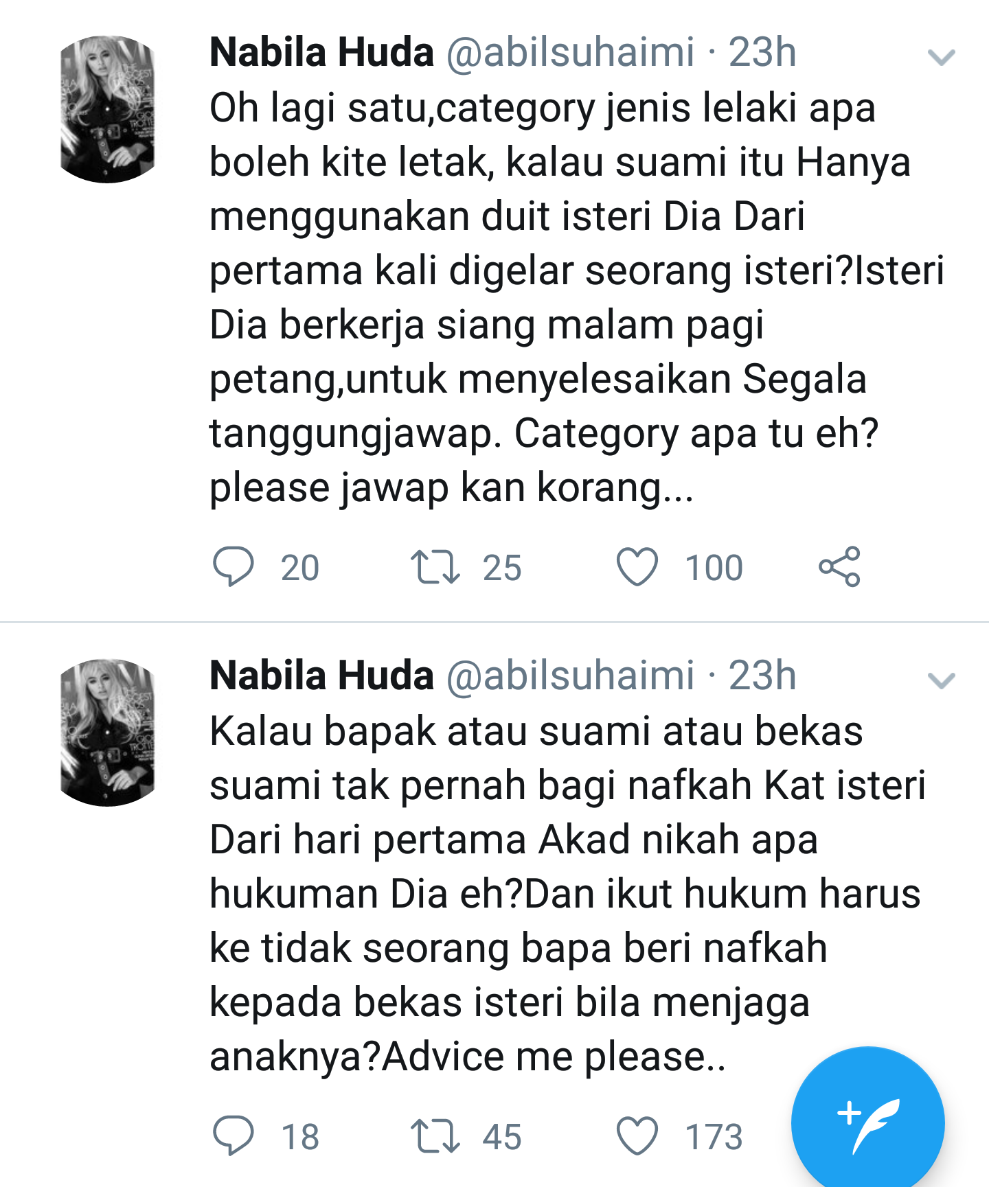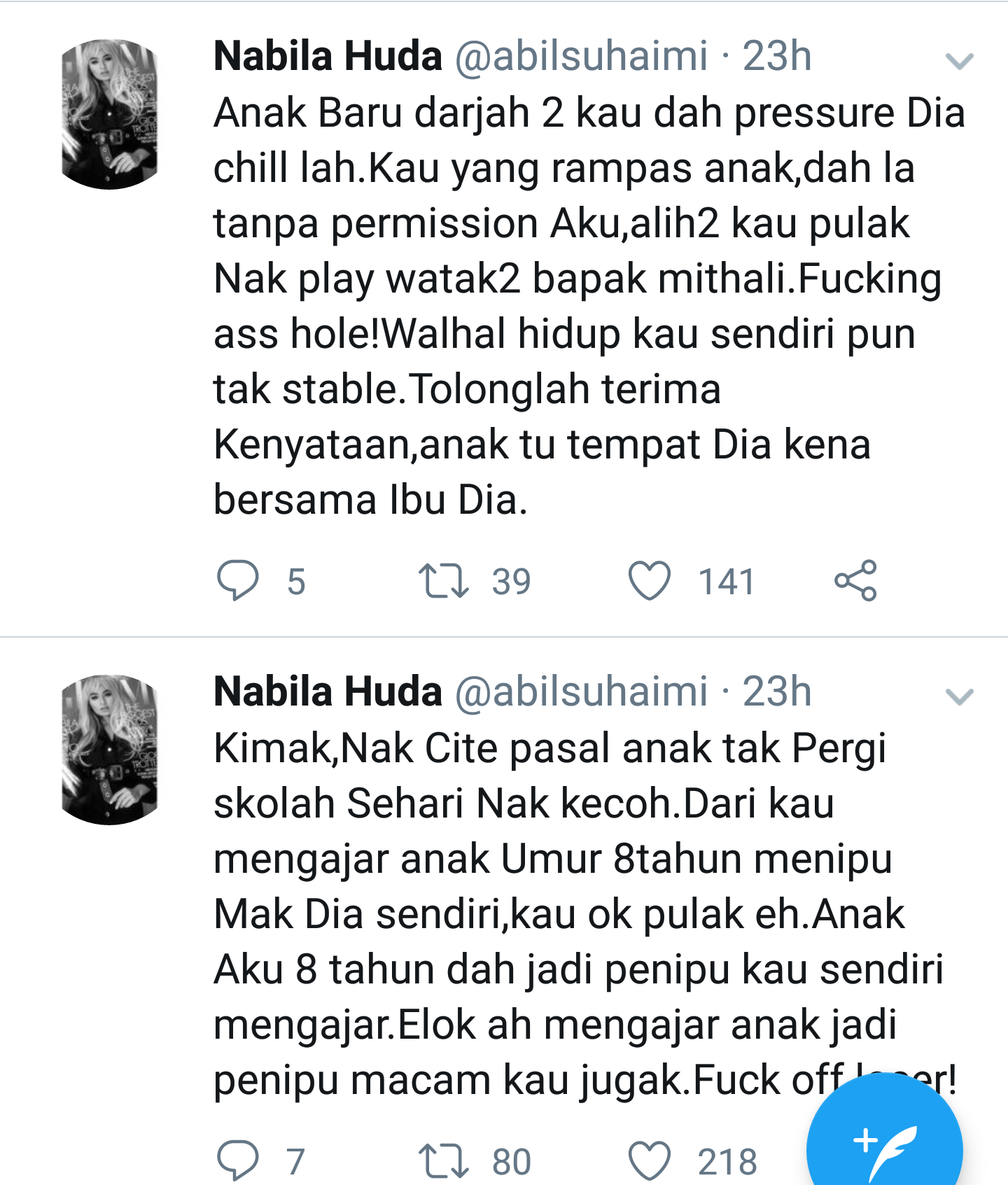 Apa yang Cik Kopi perhatikan, Nabila dipercayai melampiaskan amarahnya terhadap bekas suami yang dikatakan tidak menjalankan tanggungjawab sebagai seorang ketua keluarga ketika mereka bergelar suami isteri.