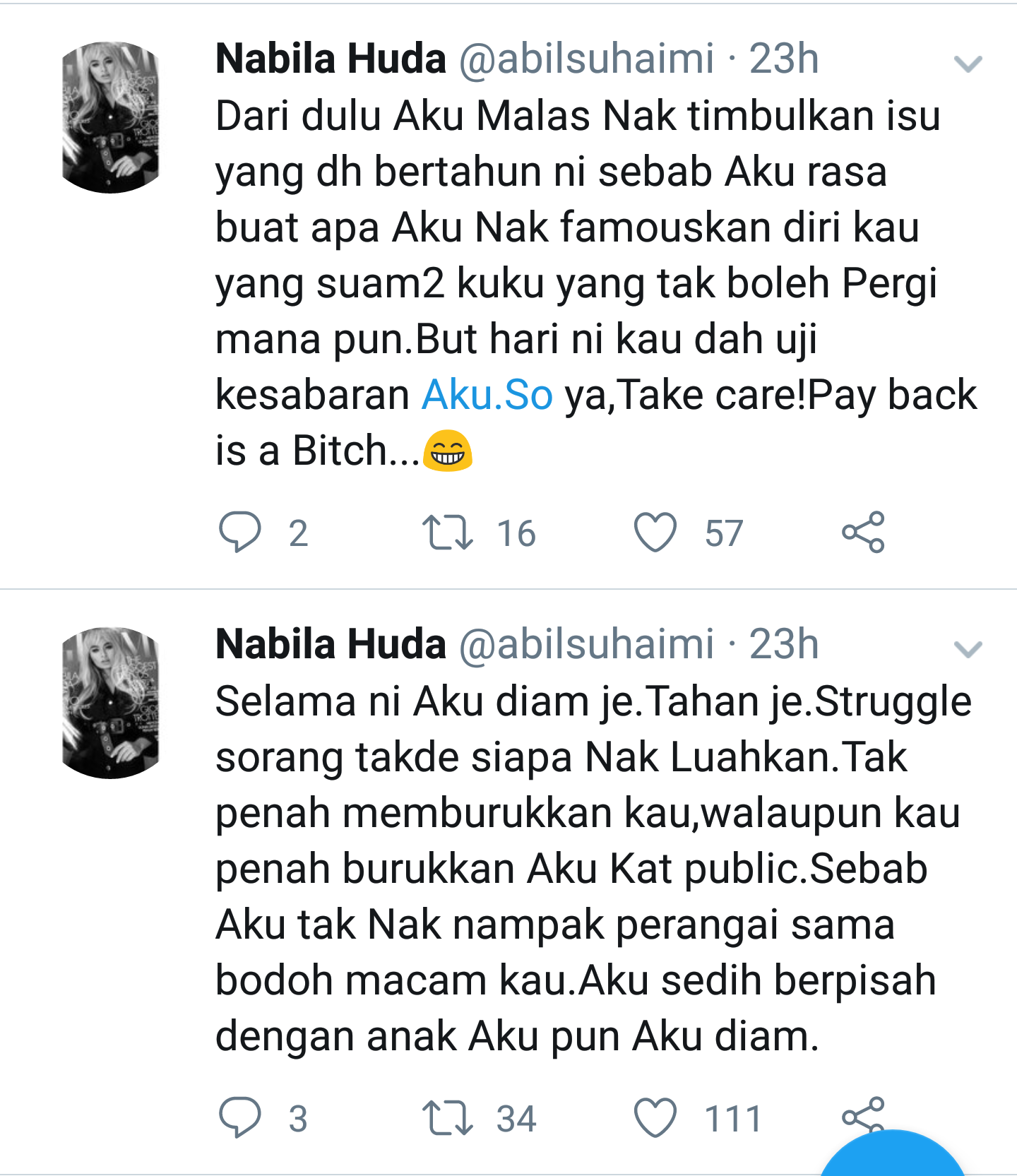 Tak semena-mena mata Cik Kopi tertancap pada satu status pelakon popular Nabila Huda yang macam tengah mengamuk kat seseorang.