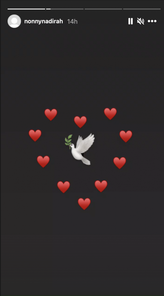 Setelah memadamkan video yang mencetuskan kontroversi di Instagram baru-baru ini, pelakon Nonny Nadirah dilihat tidak memuat sebarang posting di laman sosial.