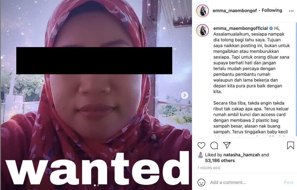 Pembantu Rumah Emma Maembong Hilangkan Diri, Tinggalkan Bayi Di Ruang Tamu