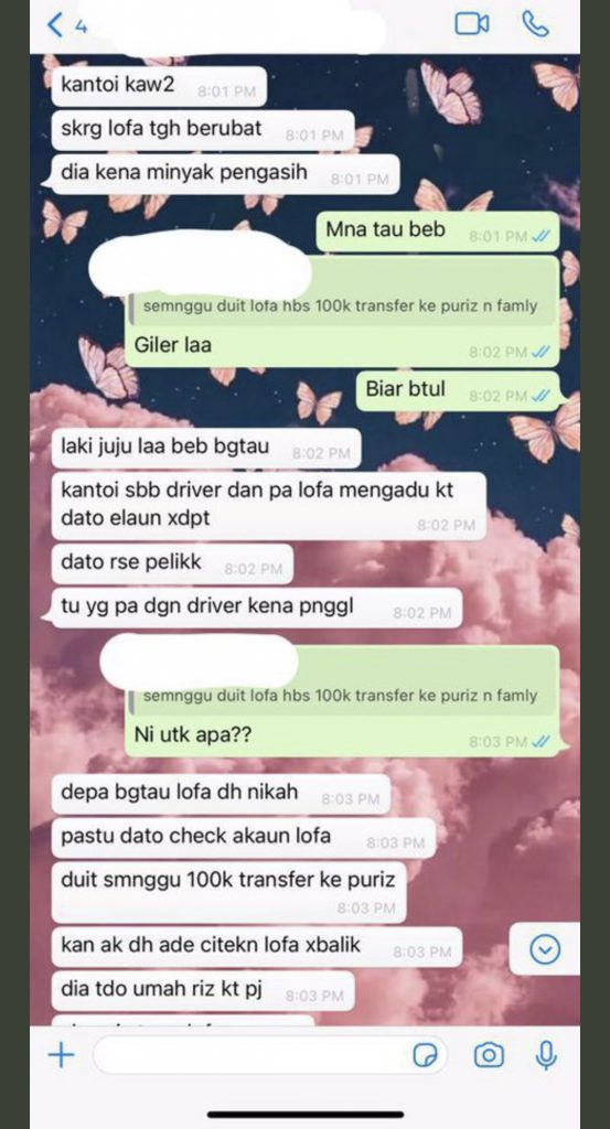 Selain itu, Neelofa juga dikatakan telah menyerahkan wang sebanyak RM100,000 kepada PU Riz.