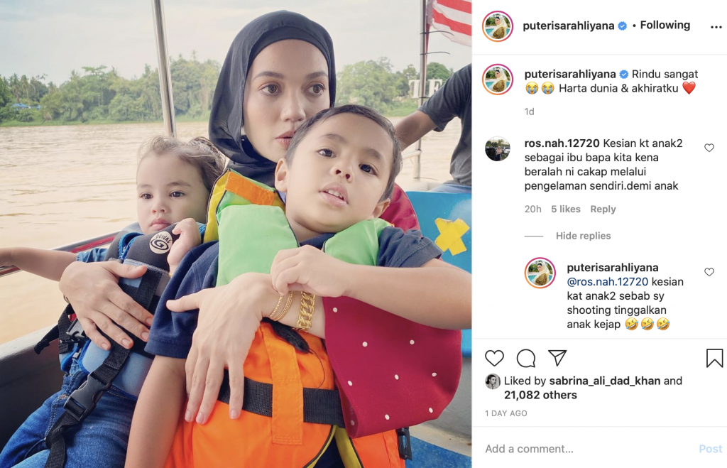 Baru-baru ini pelakon Puteri Sarah Liyana memuat naik sekeping gambar bersama-sama kedua-dua anaknya sambil menyatakan perasaan rindu terhadap mereka.