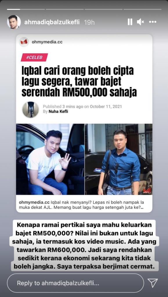 Pada masa sama, Iqbal juga tidak mahu dia disamakan dengan founder lain yang hanya semata-mata mempunyai wang untuk menghasilkan lagu.