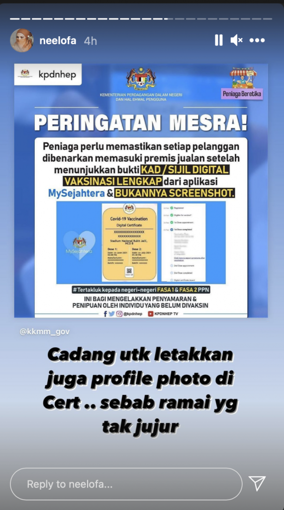 “Sebab Ramai Yang Tak Jujur…” – Neelofa Cadang Letak Gambar Profile Pada Sijil Vaksinasi
