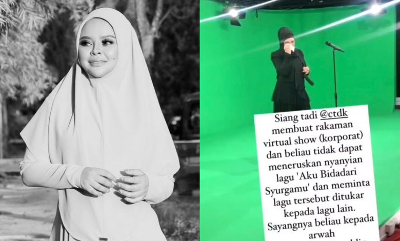 “Siang tadi (semalam) @ctdk membuat rakaman virtual show (korporat) dan beliau tidak dapat meneruskan nyanyian lagu Aku Bidadari Syurgamu dan meminta lagu tersebut ditukar kepada lagu lain.