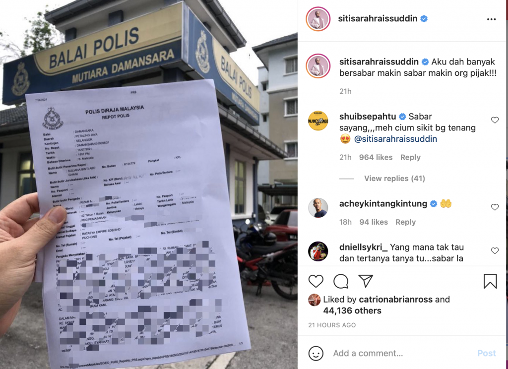 Teka-teki mengenai satu gambar laporan polis yang dimuat naik oleh penyanyi popular, Siti Sarah akhirnya terjawab.
