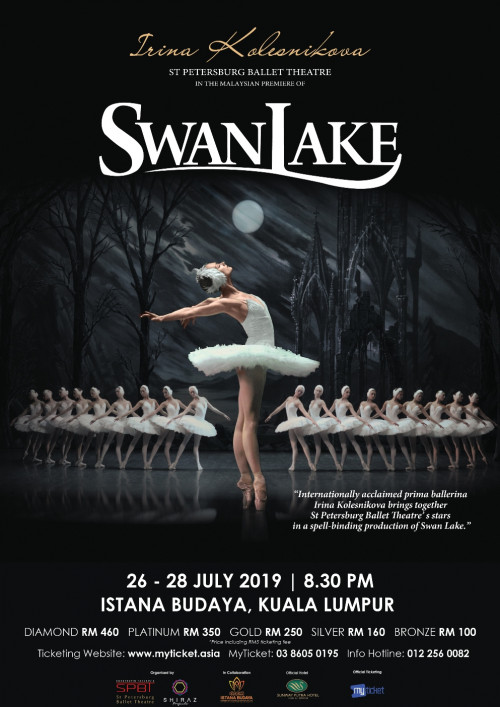 Penari balet utama wanita antarabangsa Irina Kolesnikova bersama rakan-rakan bintang produksi St Petersburg Ballet Theatre bakal menajayakan sebuah pementasan memukau di Istana Budaya, Kuala Lumpur berjudul Swan Lake bermula 26 hingga 28 Julai ini.