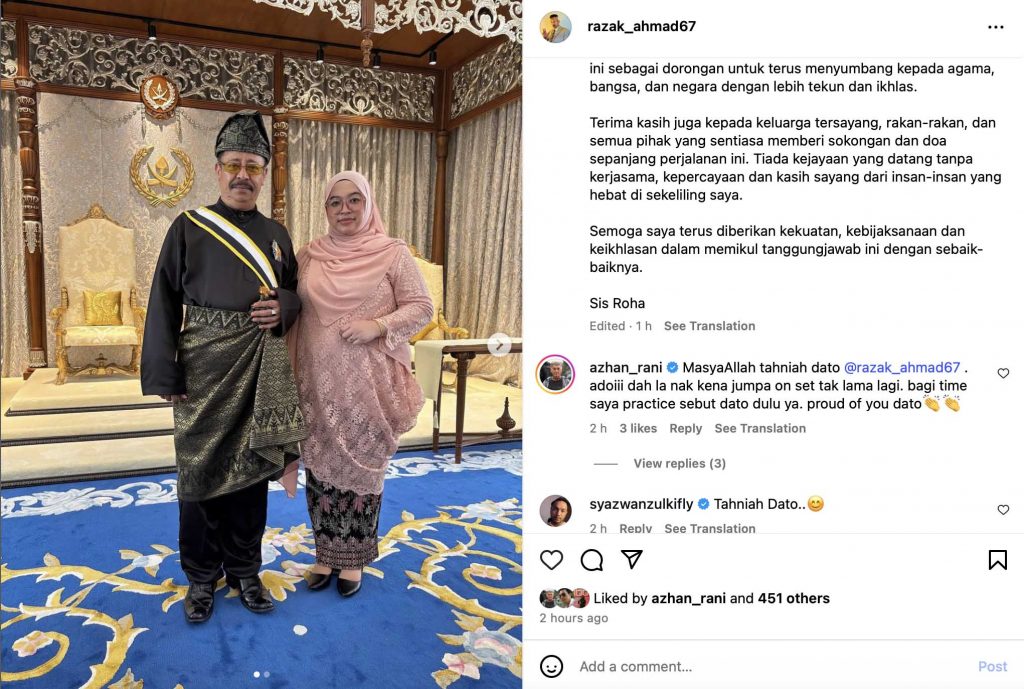 Terima Darjah Kebesaran DIMP, Pelakon Razak Ahmad Kini Bergelar Dato