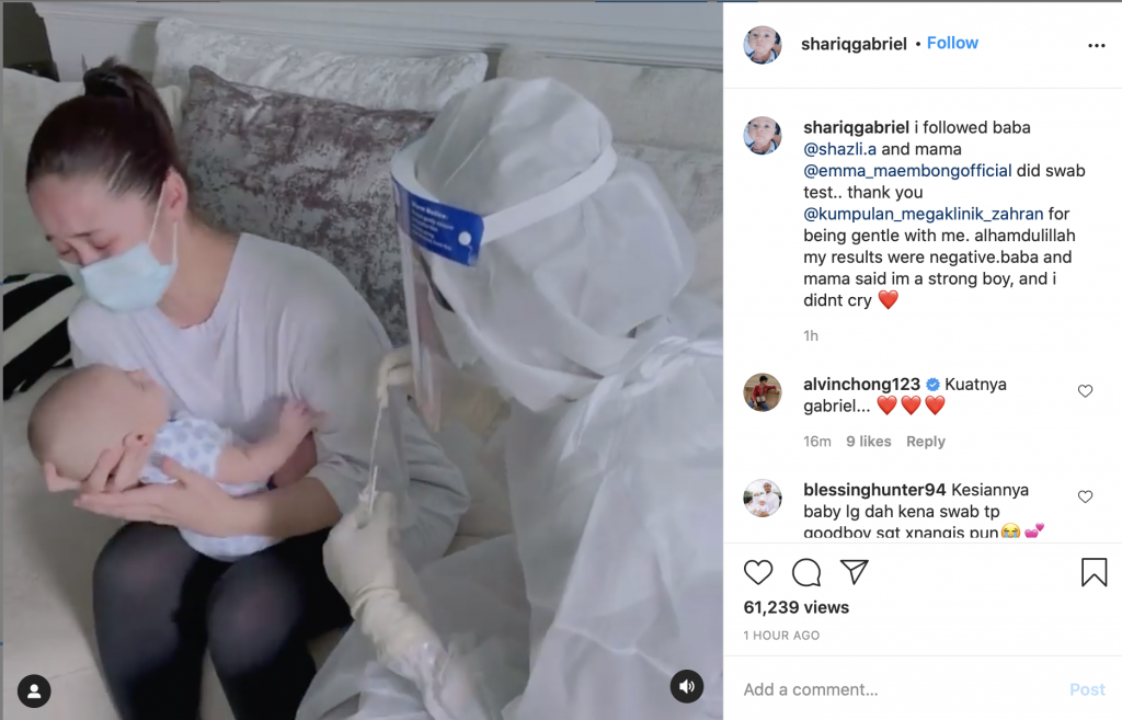 Selain Emma dan suami, turut menjalani ujian swab adalah anaknya iaitu Shariq Gabriel. Namun keputusan ujian terhadap anaknya adalah negatif. – KopiPlanet.com