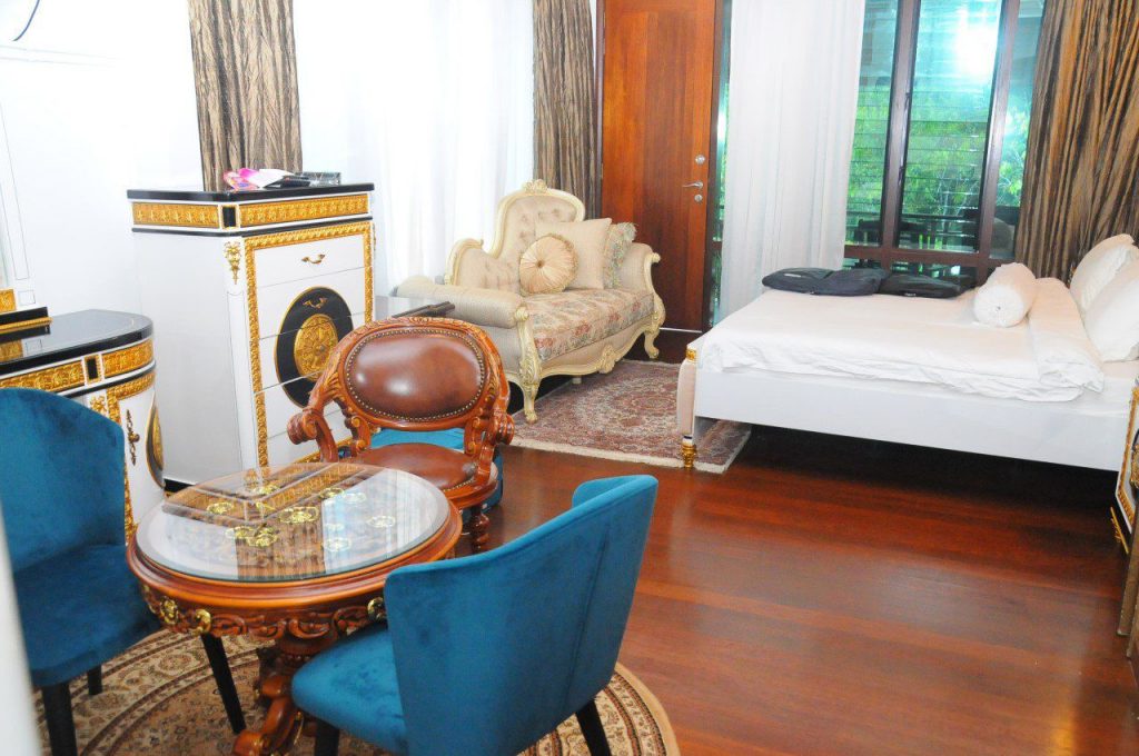 Antaranya set karaoke, ruang tamu yang luas, dapur yang dilengkapi dengan bahan asas untuk memasak, sauna serta pit BBQ.