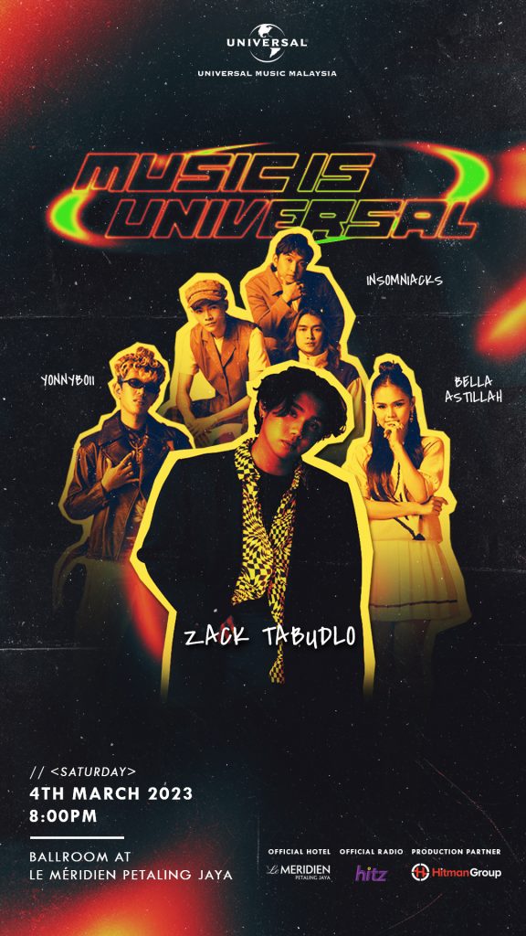 Dengan kerjasama di antara pihak Universal Music Malaysia dan Universal Music Filipina, Zack akan membuat persembahan di acara ‘Music Is Universal’ pada tanggal 4 Mac 2023 di Ballroom Hotel Le Meridien Petaling Jaya.